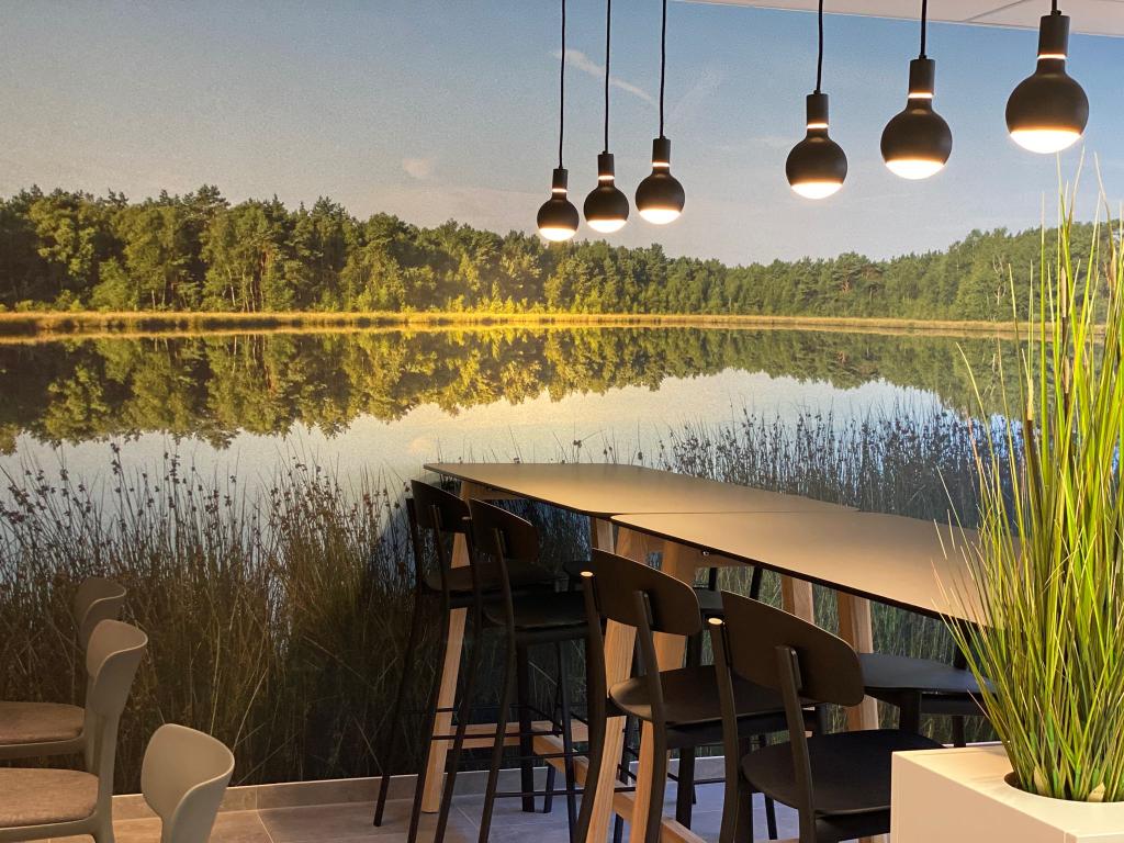 - Sociale ruimte: Voor een meer informele werkervaring of een moment van ontspanning is er een mooie ruimte waar je kunt lunchen, koffie drinken of rustig kunt wachten op een vergadering. Deze ruimte is voorzien van een ruime staantafel & apart tafels en biedt een inspirerende setting voor het bevorderen van samenwerking en informele interactie tussen collega's of klanten.